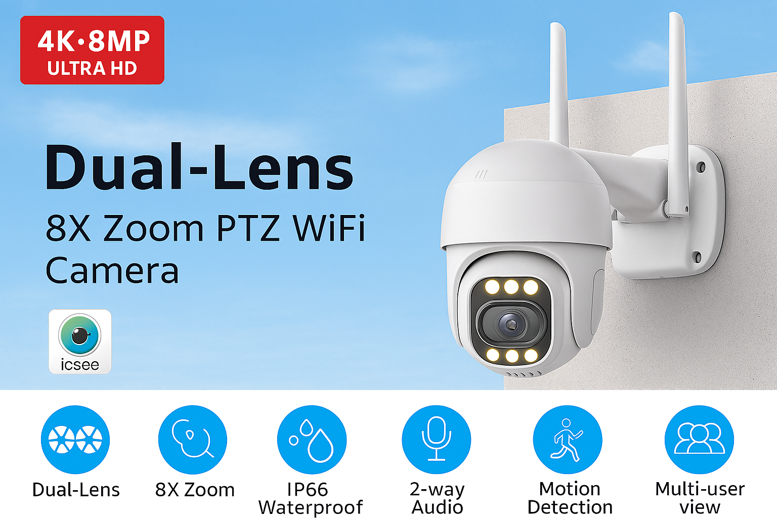Dual-Lens 8X Zoom PTZ WiFi Camera